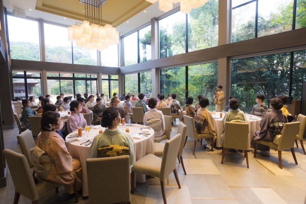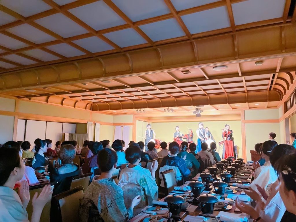 総勢約60名での食事会。色とりどりの美しい着物に身を包んだ皆様が会場を華やかに彩ってくれました。見どころの一つだった日本舞踊や和太鼓演奏などのパフォーマンスも圧巻で、多くの好評の声を頂きました。