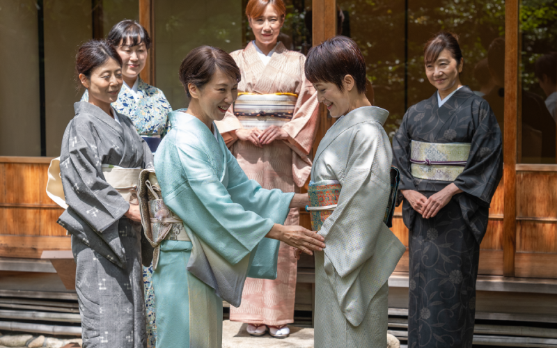 着物の着付けだけでなく、着物をきっかけに、季節感や職人の方たちの想い、目には見えないものへの感謝の気持ちなど、内面から磨かれていきます。